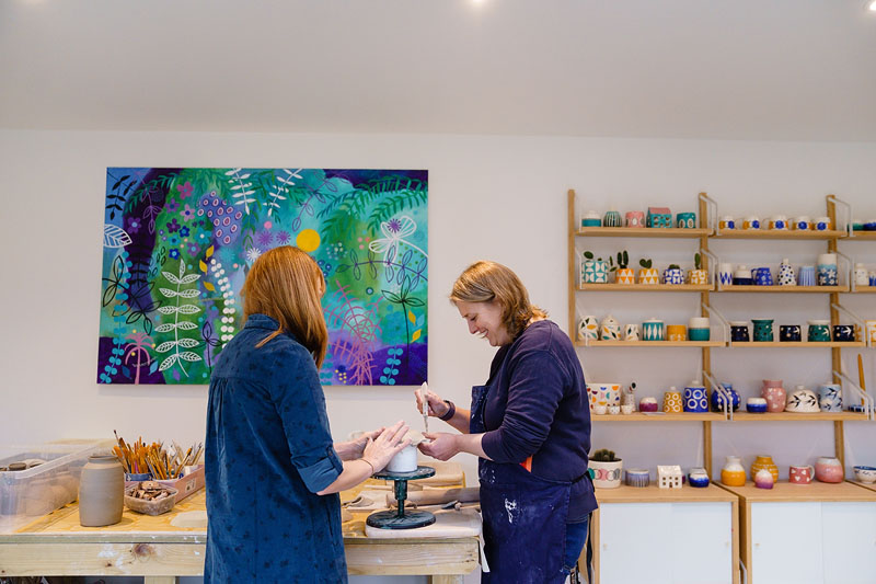 I offer fun and informal lessons on my professional wheels for up to two people. You will receive plenty of help and guidance to ensure you learn the process of making a range of pots and bowls. You can book another session to learn how to trim your pots and decorate them using different techniques.